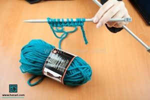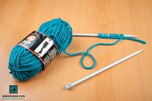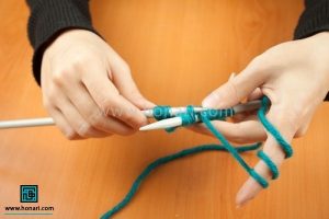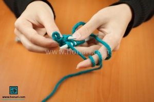 – ابتدا تعدادی دانه از کاموا سر می‌اندازیم.