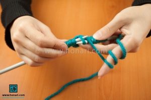 – ابتدا تعدادی دانه از کاموا سر می‌اندازیم.