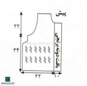 وقتی قد کار به ۳۴ سانتی‌متر رسید، برای قسمت یقه، از اول رج، یک، دو و سه دانه را می‌بندیم.