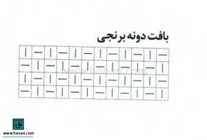 ۱۸ دونه را به روش دانه جودانه ببافید. سپس: ۱ دونه رو، ۶ دونه زیر، ۱ دونه رو، ۶ دونه زیر، ۱ دونه رو، ۶ دونه زیر، ۱ دونه رو، ۶ دونه زیر، ۱ دونه رو، ۶ دونه زیر، ۲ دونه رو، و بعد ۱۸ دانه آخر را دوباره به روش دانه برنجی ببافید.