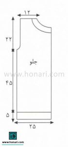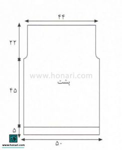 وقتی قد کار به ۵۰ سانتی‌متر رسید، در رج‌های رفت، برای قسمت آستین به ترتیب ۱، ۱، ۲ و ۳ دانه را کور کنید.
