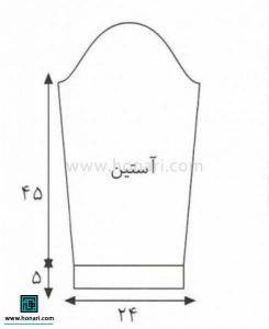 در این مرحله، به سراغ بخش آستین لباس می‌رویم. ابتدا باید الگوی آستین را که از قبل آماده کرده‌اید، روی پارچه قرار دهید. دقت کنید که جهت پارچه (راستای تار و پود) با الگو کاملاً مطابقت داشته باشد تا آستین بعد از دوخت، فرم طبیعی و مناسبی پیدا کند.