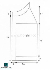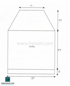 وقتی قد بافت به ۵۸ سانتیمتر رسید، برای فرم دادن به یقه، از وسط جلو به ترتیب