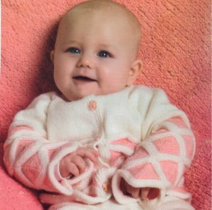 به این صورت، آموزش بافت ژاکت نوزاد دختر به پایان می‌رسد.