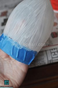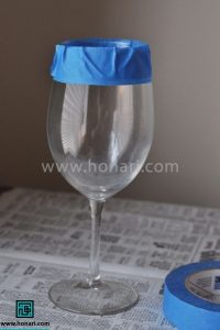 روی لبه لیوان (همان قسمتی که نباید چسب به آن برسد) را با نوار چسب می‌پوشانیم.