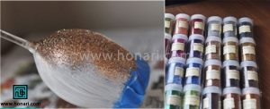 در مرحله هشتم، با یک اکلیل به رنگ دیگر، مانند کاری که در مرحله قبل انجام دادیم، روی قسمت‌هایی که چسب زده‌اید، اکلیل بریزید.