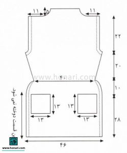 برای بافتن جیب، ۳۰ دانه سر می‌اندازیم. در هر دو طرف، یک دانه را به عنوان دانه لبه می‌بافیم. دانه‌های وسط را به مدت ۱۳ سانتیمتر به روش بافت ساده (سلانیک) ادامه داده و سپس می‌بندیم. جیب‌ها را مطابق الگو می‌بافیم.