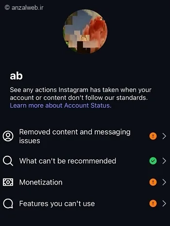 اگر اکانت شما مانند حساب من تمام مقررات اینستاگرام را به درستی رعایت کرده باشد، در کنار هر قسمت باید یک علامت تیک به رنگ سبز مشاهده کنید.
