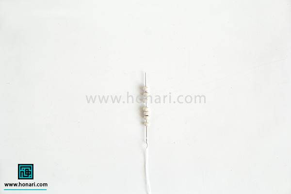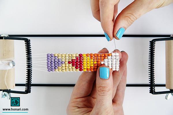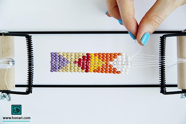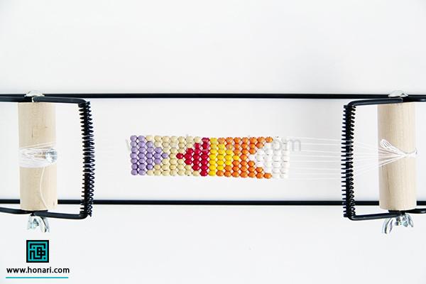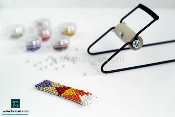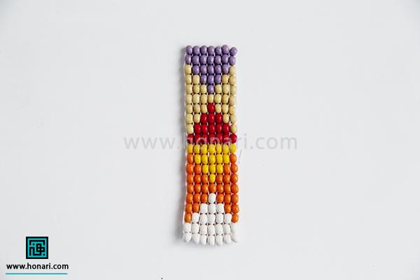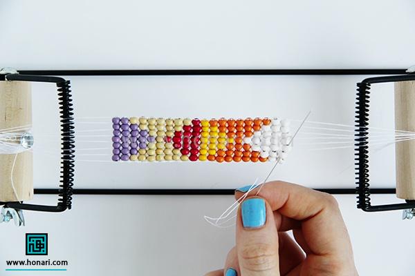 مهرهها را هم به همان ترتیبی که در طرح و نقشه مشخص شده، یکییکی وارد سوزن میکنیم.