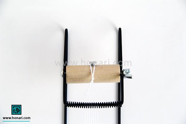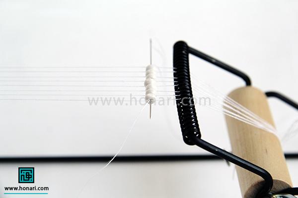 سوزن را از قسمت زیرین دستگاه خارج کرده و از میان مهرهها رد میکنیم.