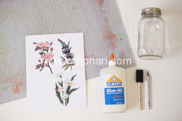 وسایل مورد نیاز برای آموزش دكوپاژ روی شیشه مربا: