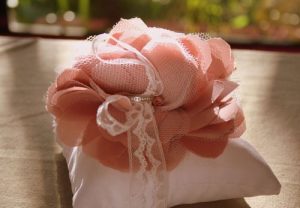 گل را میتوانید با چند روبان دیگر تزیین کنید و به عنوان جای حلقه استفاده کنید