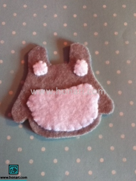 حالا نوبت به تکههای تزیینی باقیمانده سنجاب نمدی میرسد. این قطعات را هم با دقت و حوصله در جای مناسب خود بدوزید.