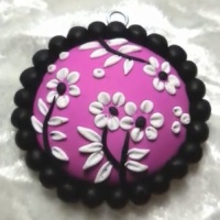 یک دایره به رنگ صورتی میکشیم. سپس یک دانه مشکی در مرکز آن قرار میدهیم. بعد، دانههای سفید را در اطراف این دانه مشکی میچینیم، طوری که شبیه گلبرگهای یک گل بشوند.