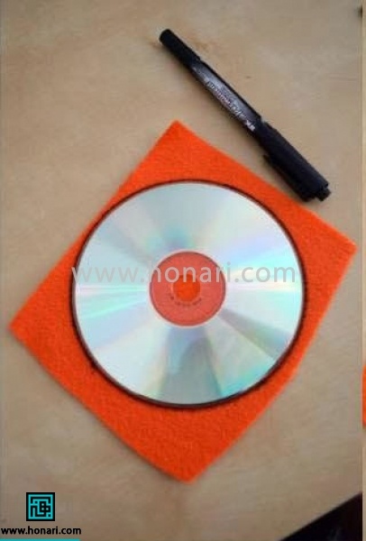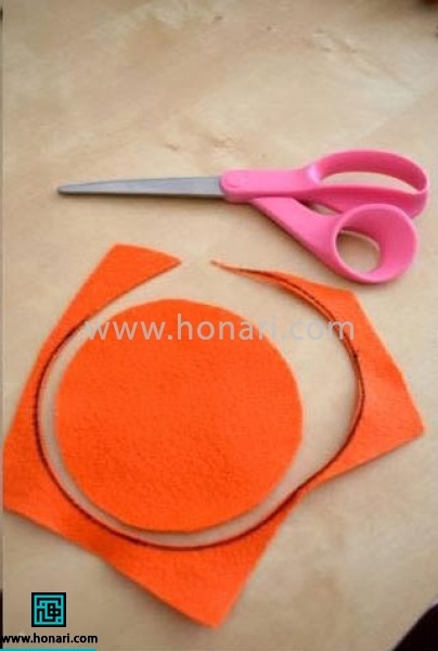 یک دایره روی پارچه نمدی خود بکشید. فراموش نکنید که اندازه این دایره، بر کوچکی یا بزرگی گل نمدی شما تأثیر میگذارد.