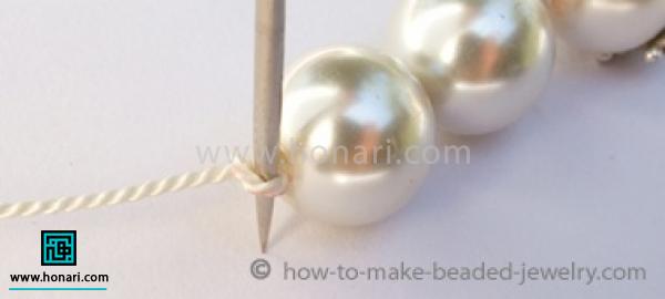 در این آموزش یاد میگیرید چطور دانههای مروارید را به هم وصل کنید، بین آنها گره بزنید و همچنین نخ ابتدا و انتهای دستبند را به شکلی قایم کنید که دیده نشود.