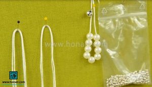 وسایل مورد نیاز برای این دستبند عبارت‌اند از: نخ مخصوص دستبند‌بافی، مروارید و منجوق.