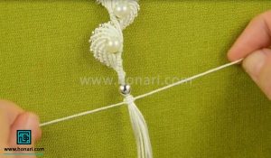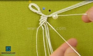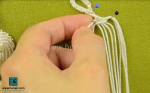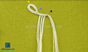 در این بخش، سه تکه نخ به طول سه متر برمی‌داریم. هر کدام را از وسط تا می‌زنیم و سپس آن‌ها را به قسمت اصلی کار گره می‌زنیم.