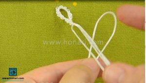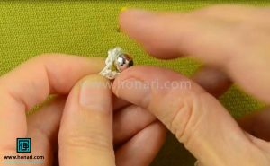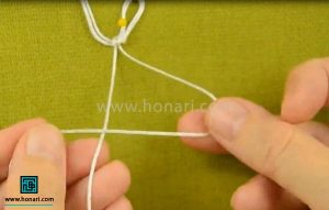 در این مرحله، یک گره به اندازه‌ی مهره‌ای که برای قفل دستبند انتخاب کرده‌ایم، می‌زنیم. با این کار، حلقه‌ای درست می‌شود که نقش قفل دستبند را خواهد داشت.