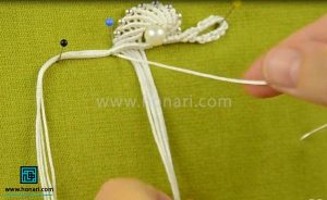 طبق روشی که گفته شد، قسمت پایینی مهره را می‌بافیم. سپس همین کار بافتن را ادامه می‌دهیم تا به انتهای دستبند برسیم.