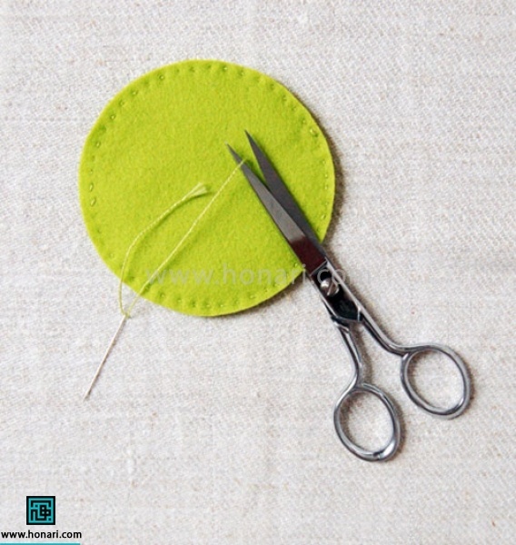 برای درست کردن این کاردستی، به دو دایره بزرگ، یک دایره کوچکتر و هشت قطعه مثلثی شبیه به قاچهای پرتقال نیاز دارید. ابتدا باید الگوی خود را با استفاده از یک مداد خیاطی مخصوص یا صابون خیاطی روی پارچه نمدی بکشید. سپس تمام قطعات را با دقت با قیچی ببرید.