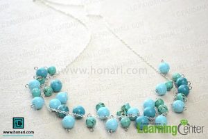 مهرهها را به این شکل به بخش مرکزی زنجیر آویزان کنید. شما میتوانید چیدمان آنها را بر اساس سلیقه شخصی خودتان مرتب کنید.