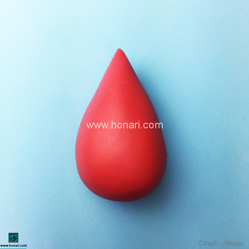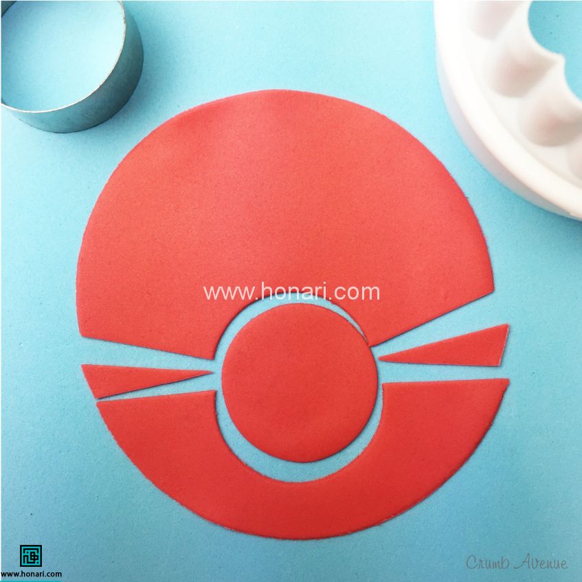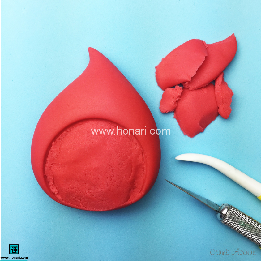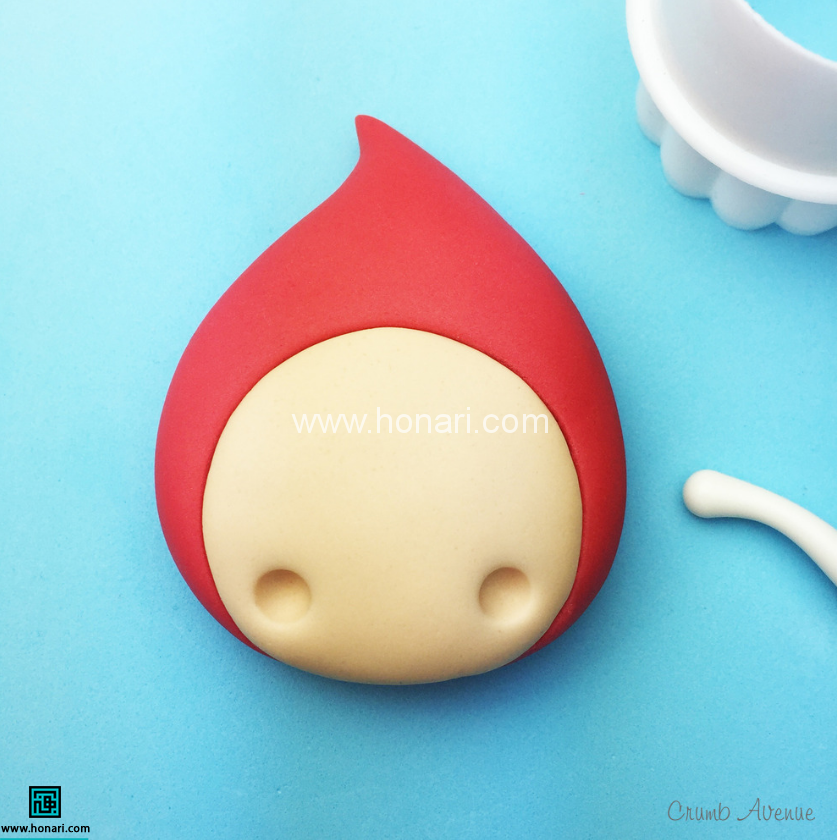 یک بخش از خمیر قرمز بردارید (این قسمت باید کمی بزرگتر از خمیر سفید باشد) و آن را به شکل یک قطره درآورید.