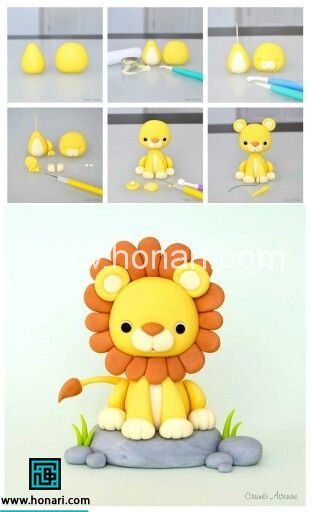 با مخلوط کردن رنگ زرد و نارنجی می‌توانید یک شیر خمیری رنگ درست کنید، دقیقاً شبیه به شکلی که در عکس می‌بینید.