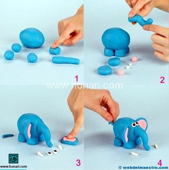 برای ساختن یک فیل، می‌توانید از راهنمای مرحله‌به‌مرحله‌ی موجود در عکس زیر استفاده کنید.