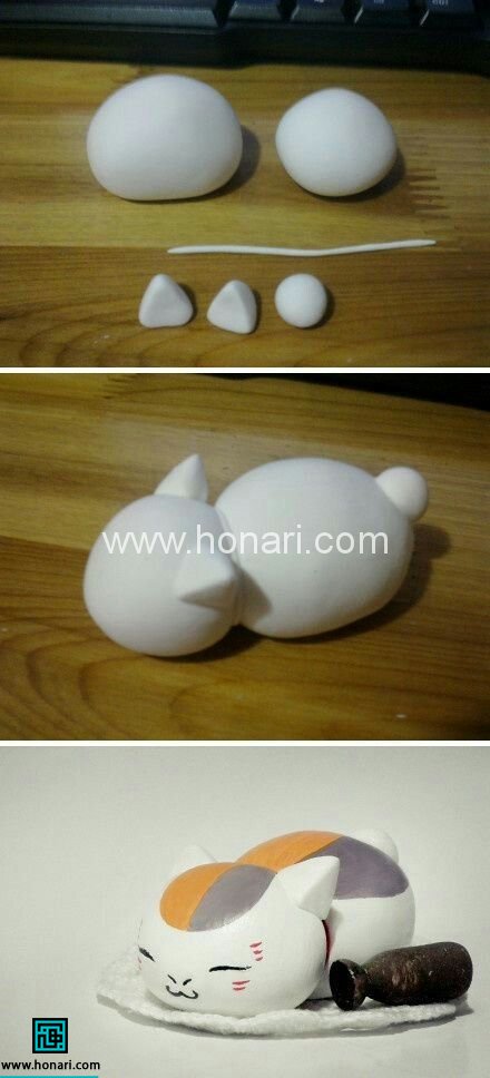 قبل از شروع، مشخص کنید چه عروسکی می‌خواهید بسازید. مثلاً برای درست کردن یک گربه، باید قطعات مختلفی از خمیر آماده کنید: