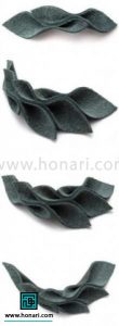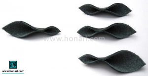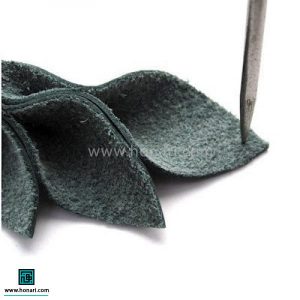 بعد از اینکه چرم گاوی را تهیه کردید، ابتدا باید الگوی کار (که شبیه یک برگ کشیده است) را روی چرم بگذارید و چهار قطعه دقیقاً مانند آن را ببرید.