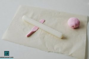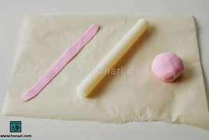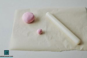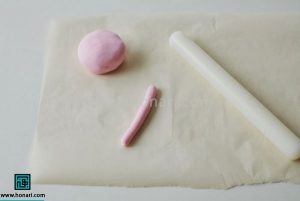 یک تکه کوچک از خمیر صورتی بردارید و آن را به شکل یک دایره درآورید.