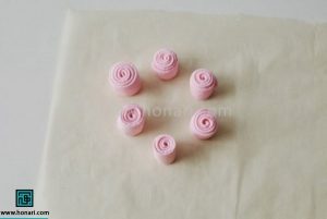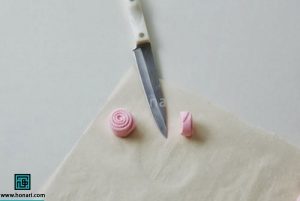 در پایان این مرحله، یک گل رُز کوچک و زیبا از خمیر درست شده است.