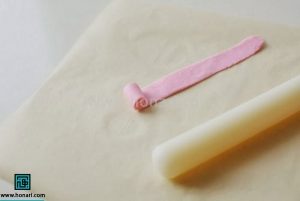 این کار را تا انتها ادامه میدهیم تا به صورت یک نوار دراز و باریک درآید. هرچه این نوار نازکتر شود، کار زیباتر و دقیقتر خواهد شد.