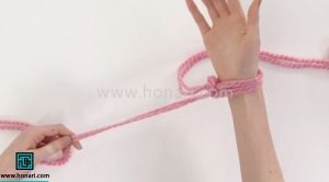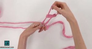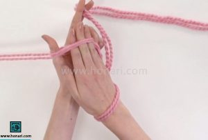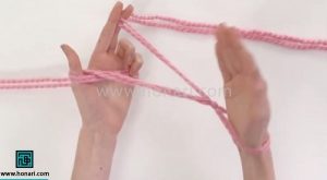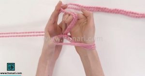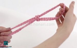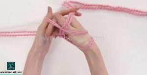 حلقه‌ای که درست کرده‌اید را با دست چپ خود بگیرید.