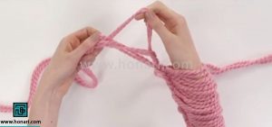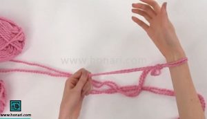 در این مرحله، پیشنهاد می‌شود که دو کلاف کاموا را با هم و همزمان به کار ببرید.