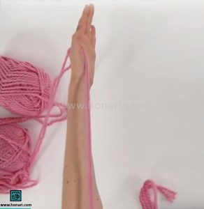 یک تکه از کاموا را اندازه بگیرید. برای این کار، فاصله بین مچ دست تا آرنج خود را در نظر بگیرید و طول کاموا را به اندازه شش برابر این فاصله ببرید.