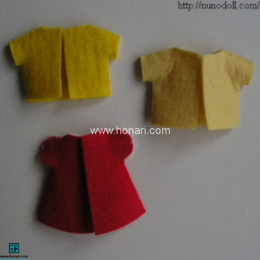 برای لباس و قسمت بدن عروسک، نمد به رنگ‌های مورد علاقه‌تان