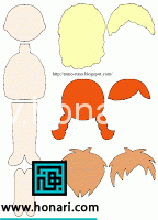 در ابتدا، به شکل و طرحی که می‌بینید با دقت نگاه کنید. سپس، تکه‌های مورد نیاز را به تعداد لازم آماده کنید. (در عکس بالا، نمونه‌هایی برای سه نوع مدل مو، مناسب برای سه گونه عروسک دختر و پسر نشان داده شده است.)