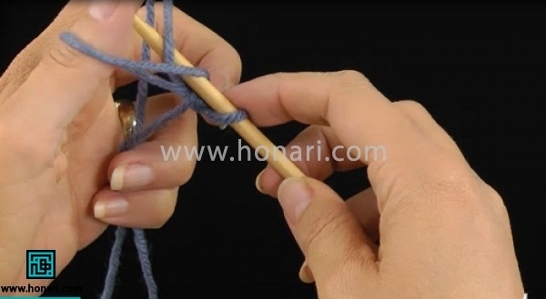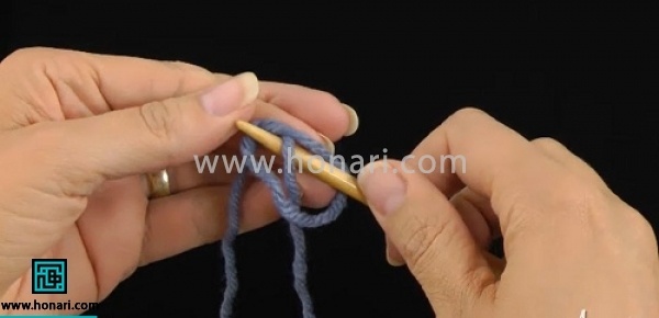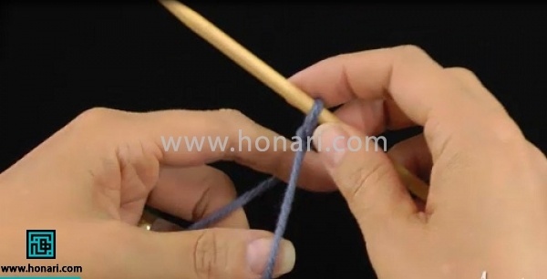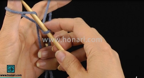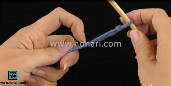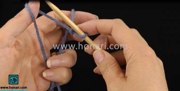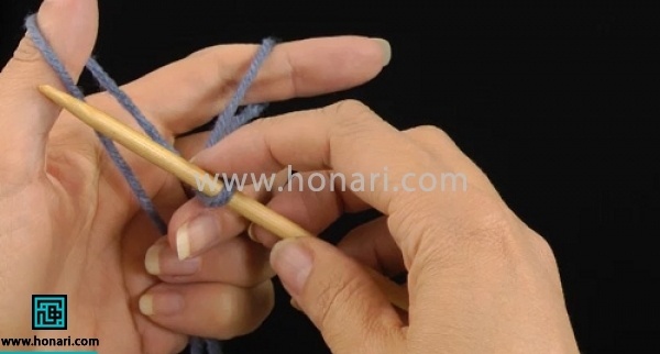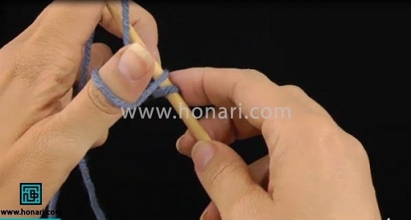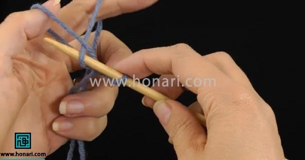 کاموا را با میل بردارید و به طرف انگشت شست خود بچرخانید.