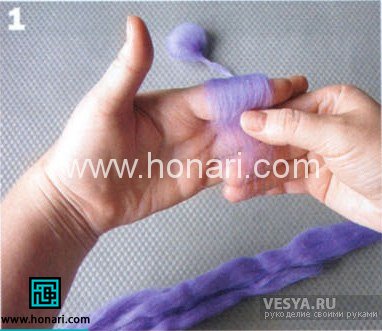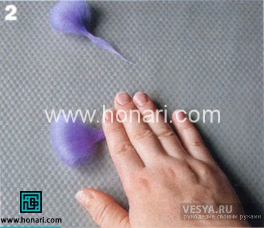 مقداری از رشتههای بنفش کچه را بردارید. آن را دور انگشت خود بپیچید تا خم شود.