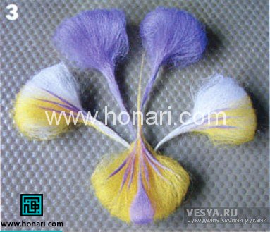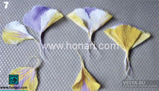 با همین روش و با کمک نخهای سفید و زرد، گلبرگهایی درست کنید که شبیه تصویر زیر باشند.