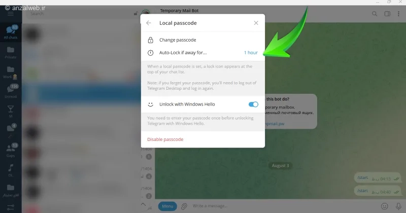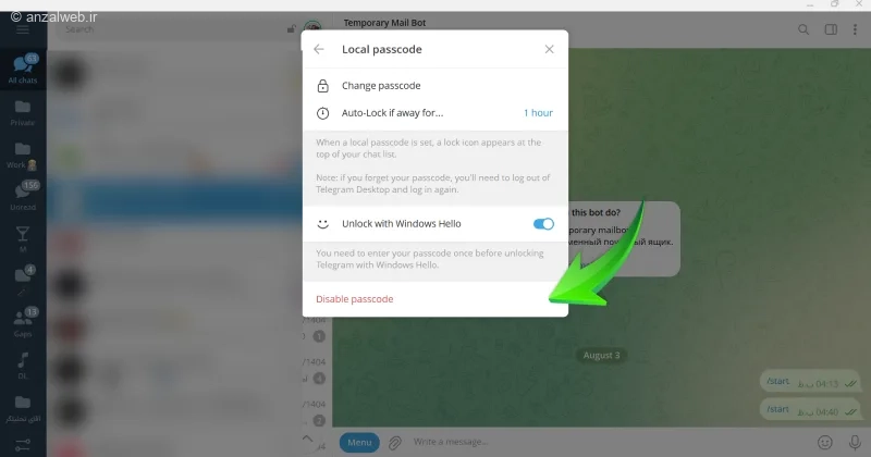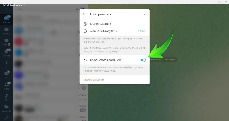 اگر لپ‌تاپ شما دارای سیستم Windows Hello باشد، می‌توانید پس از تنظیم رمز عبور، این گزینه را فعال کنید. با این کار، هر بار که تلگرام را باز می‌کنید، به جای وارد کردن رمز، فقط با اسکن صورت یا اثر انگشت خود می‌توانید وارد حساب کاربری‌تان شوید و پیام‌ها را ببینید. اگر تلگرام رمز عبور یا حتی شماره حساب شما را قبول نمی‌کند، اول از همه اتصال اینترنت خود را چک کنید.