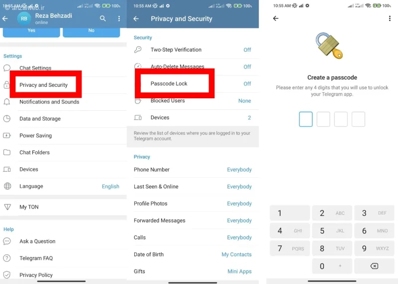 چگونه رمز عبور برای برنامه تلگرام تنظیم کنیم؟