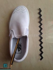 ابتدا از قسمت جلوی کفش، یک طرح زیگزاگ رسم میکنیم.