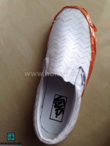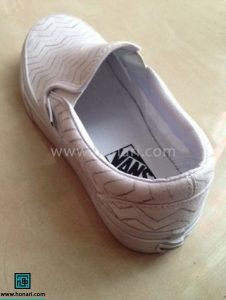 نقشه و طرح مورد نظر را روی تمام قسمتهای کفش پیاده میکنیم.
