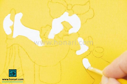 دقت میکنیم که هنگام رنگآمیزی روی پارچه، حرکت نرم و بدون فشاری داشته باشیم