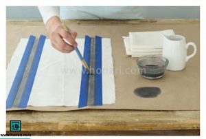 ابتدا با استفاده از نوار چسب، محدودهی خطوطی را که قصد رنگآمیزی آنها را داریم، مشخص میکنیم. سپس کار رنگآمیزی را شروع میکنیم.
