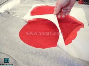 رنگ را به ابر آغشته کرده و سپس آن را روی پارچه میزنیم.