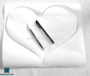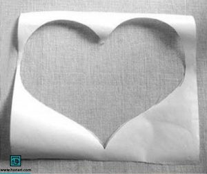 اول، شکل قلب را روی کاغذ میکشیم و سپس دور آن را با دقت قیچی میکنیم تا الگوی ما آماده شود.
